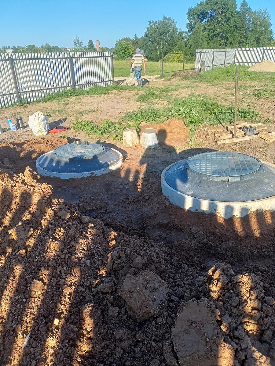 - Обратная засыпка. Пространство между кольцами и грунтом засыпают и утрамбовывают.